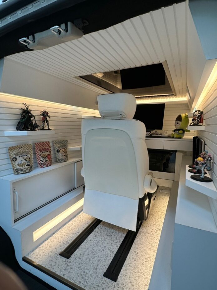 PV5 Gaming Station Concept는 PV5 카고를 기반으로 제작된 프리미엄 1인용 게이밍 스테이션 콘셉트카다. V2L(Vehicle to Load)기반 전력 시스템을 활용해 차량 내부의 몰입형 게이밍 환경을 구현했으며, 이동과 공간의 경계를 허물고 ‘개인의 게임 스튜디오’로 확장되는 경험을 제안한다.