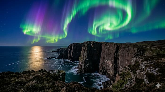 반면 겨울의 셰틀랜드는 칠흑 같은 어둠 속에서 천상의 커튼을 드리운다. 위도 60도에 위치한 이곳은 영국에서 **오로라(Aurora Borealis)**를 관측하기에 가장 완벽한 위도를 자랑한다.