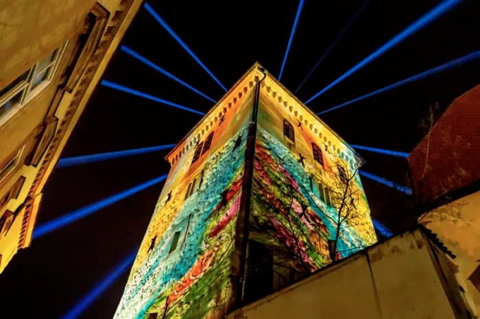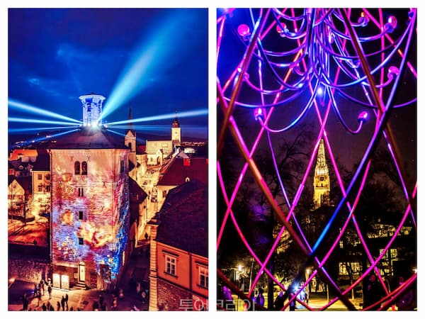축제의 정점은 자그레브의 상징인 로트르슈차크 탑(Kula Lotrščak)과 도심 외벽을 장식한 3D 매핑 영상이었다.